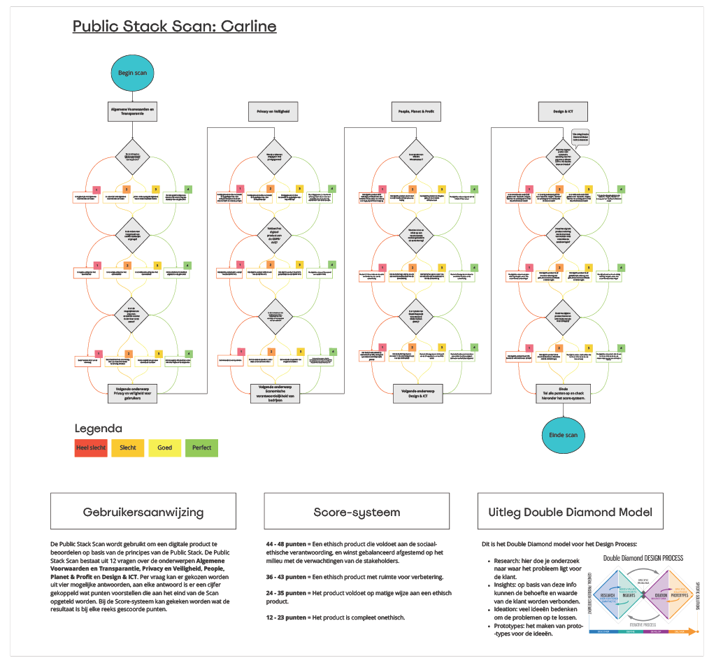Dit was de vraag die centraal stond voor de eindopdracht van blok 1. Wij zijn bezig gegaan met het maken van een Public Stack Scan, een scan die je kunt doorlopen om te bepalen of/ in hoeverre een technologie of applicatie voldoet aan publieke waarden. Hierbij hebben wij gekeken naar verschillende gebieden: rechten, sociaaleconomische waarden, zeggenschap en beheer, design en techniek. Daarnaast hebben wij stilgestaan bij het doel van de technologie: waarom bestaat het en waarvoor wordt het gebruikt? Met behulp van de kennis die wij hebben opgedaan in de overige weken van blok 1 en de modellen die wij behandeld hebben zijn er concepten van de scans gemaakt. Vervolgens hebben wij verschillende mensen gevraagd om de scan te testen zodat wij feedback konden ophalen en de scans konden verbeteren. De eindresultaten van de Public Stack Scans kun je hieronder bekijken.